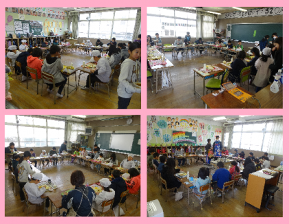 みんなで、協力して「ニコニコ班」で給食を食べました。
