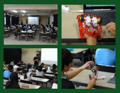 8月29日(火)には、株式会社ダイセン電子工業(本社 浪速区日本橋)の田中社長をお招きして、教育用ロボット用いて、実際に簡単なプログラムをパソコンで組んで授業を行いました。