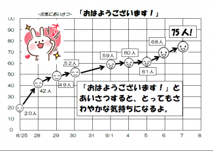 憂鬱な天気ですが、そんな天気をも吹き飛ばしてくれるかように、多くのみんなと朝のあいさつをすることができました。