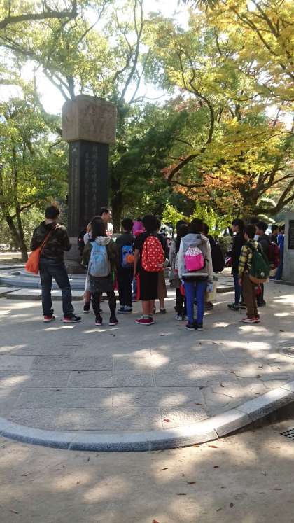 韓国人原爆犠牲者慰霊碑で、民族学級の仲間から託された、折亀を納めました。