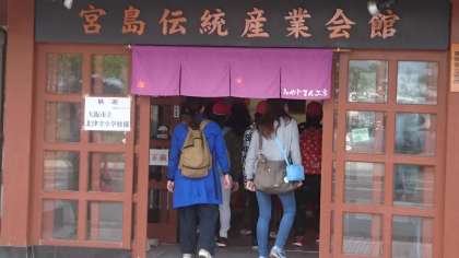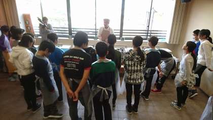もみじ饅頭作りの体験が始まりました。係の方の説明を聞いて取り組みます。きちんと作業行程を覚えて作業すれば、おいしくできあ