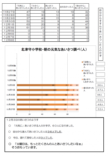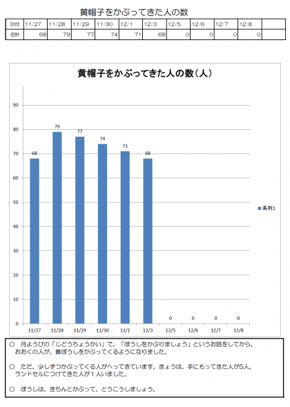 朝のあいさつ と 黄帽子 12月3日