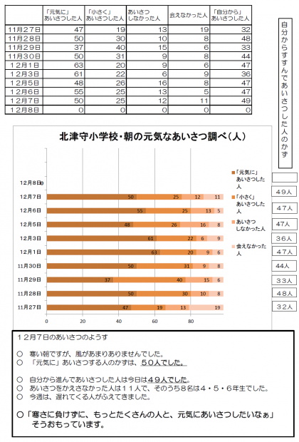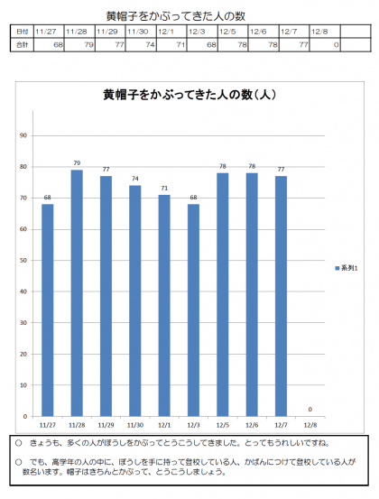 黄帽子をかぶって(手にもたずに)、時間に遅れず、元気にあいさつ!