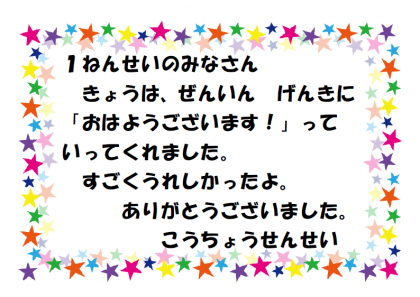14人 ぜんいんが、げんきに「おはようございます」を言いました。