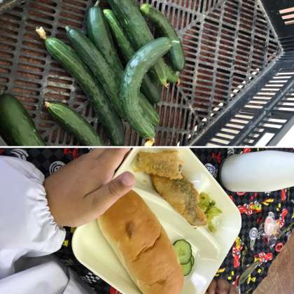 2年生が生活科の学習で植えたきゅうりがなんと立派に育ちました!!