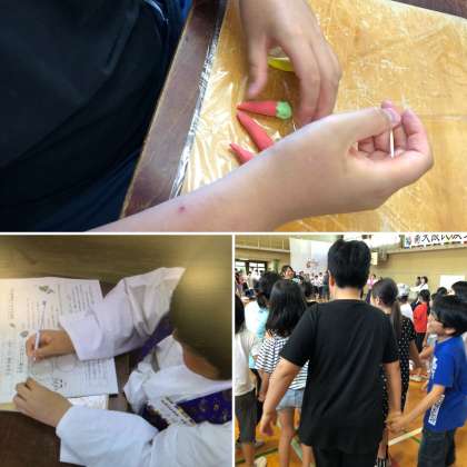 低学年はうちわを、中学年はストラップを作りました(^v^)