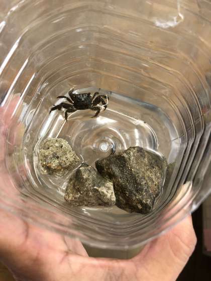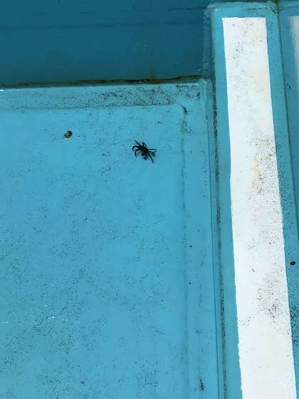 一体どこから入ってきたのか、プールを清掃していると底でテクテク・・・
