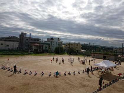 連日の雨で、運動会の全体練習も講堂ばかりでしたが、今日はようやく晴れ!!