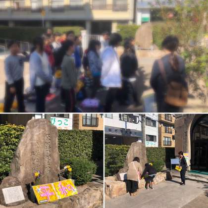 昼食後は本川小学校に行き、平和集会をし、資料館の見学をしています。