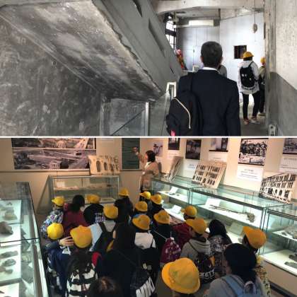 本川小学校は爆心地に最も近く、大きな被害を受けた学校です。現在は被爆校舎の一部と地下室が「平和資料館」として整備され、被爆の証として保存されています。