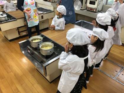 1,2年生が先日自分たちで掘ったサツマイモで、おいもパーティーをしました!