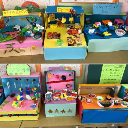 3年生がコツコツ図画工作の学習で作っていたお店屋さん。