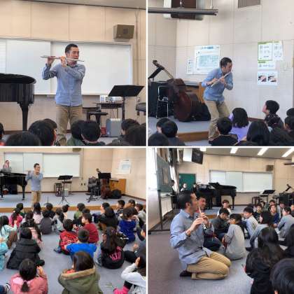 そのオーケストラの中から、今日はフルート、コントラバス、ピアノの演奏者の方々が来てくださいました。