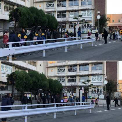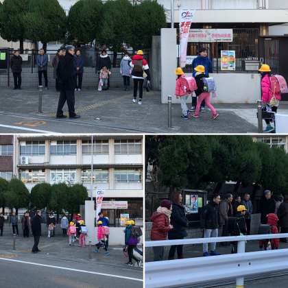朝早くから今回も地域の皆様、保護者の皆様に見守っていただき、あいさつ運動を実施しました。