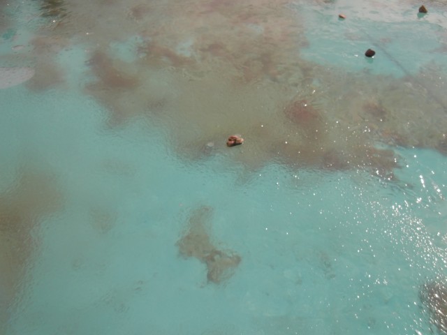 この週末からの寒波で、小学校の小プールが凍っていました。