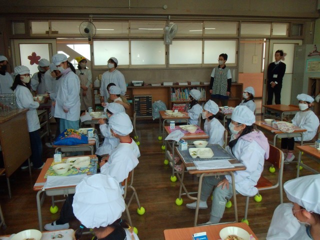しばらくの間は、6年生が給食を運んで、配膳もしてくれています。