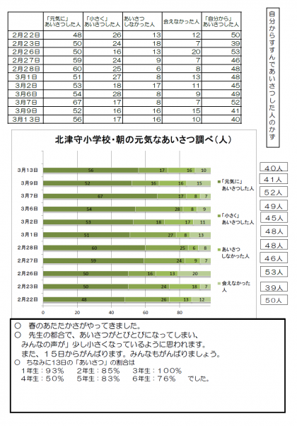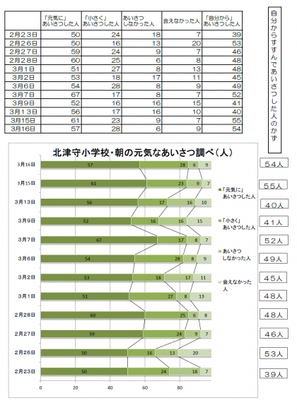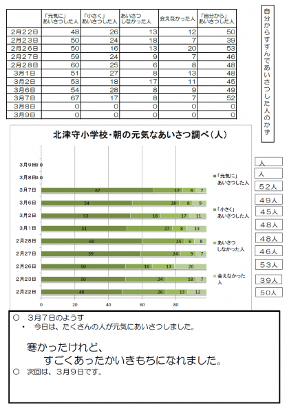 2学期から取組んできた朝のあいさつ「おはようございます」の結果です。 どうぞご...