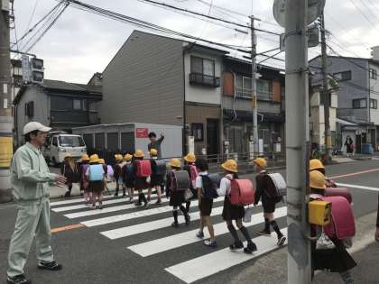 今日は初回ということもあり、顔合わせをしたあと、まず、地区長・副地区長・書記といった役割を決めました。登下校ルートで危険だと感じるところを伝え合ったり、実際に下校ルートを通りながら気をつけることを確認したりと、短い時間でしたが有意義な活動を行うことができたようです。