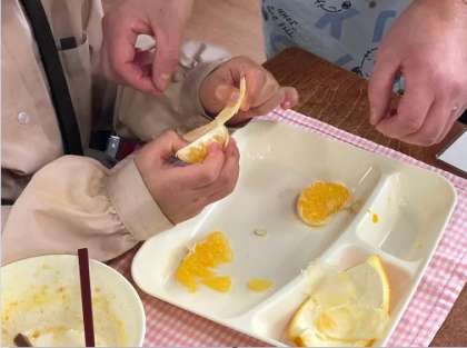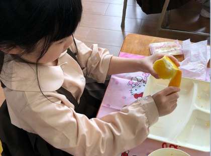 1年生では少し時間がかかりましたが、きちんとひとふさずつずつはずし、上手にむくことができていました。