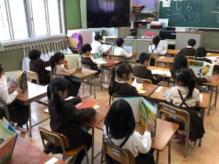 本校では、毎週水曜日の 8時35分から8時45分の10分間読書をします。その間は、オルゴール曲をかけて読書に集中できるようにしています。自分で本を決めて、じっくりと本を読んでほしいです。