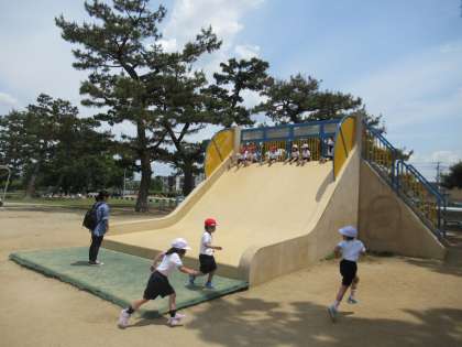 おいしいお弁当を食べた後は、大きな滑り台やターザンロープのある公園で元気いっぱい遊びました。