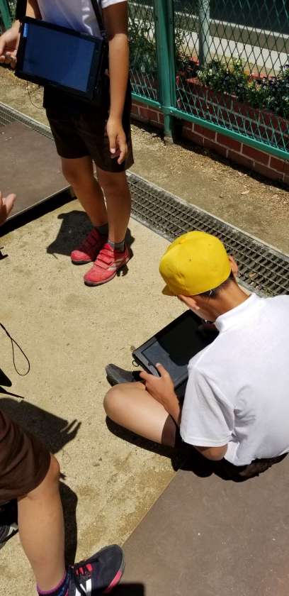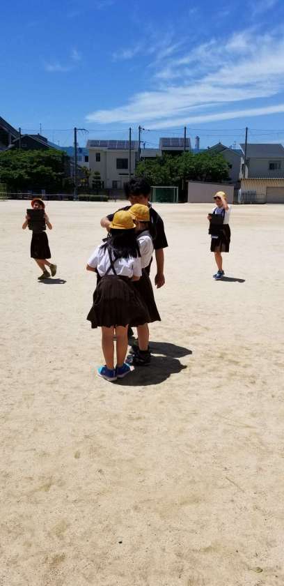 今日は、児童一人一人がタブレット使い、学校の好きな場所を