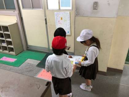 21日(火)と23日(木)の2時間目に、1年生と2年生による学校探検が行われました。2年生が1組と2組で、それぞれ教室の説明係と案内係に分かれ、1年生にいろいろな教室や部屋の説明をしたり、案内をしたりしました。2年生は、「上手に説明できるかな」「ちゃんと案内できるかな」と不安を口にしていましたが、上手に説明し、1年生を優しくリードしていました。学校探検のあと、1年生と2年生が仲良くなり、笑顔で会話する姿が見られました。とても素敵な学校探検になりました。