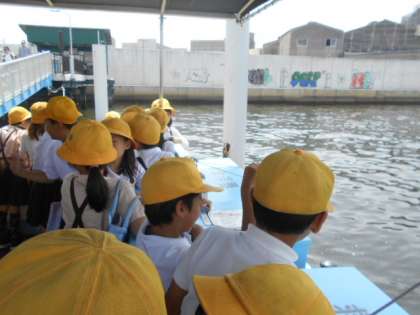 5月27日に、千本松渡船場へ行き、身近な地域のことについて学習してきました。「船に乗るぞ!」と意気込み、船を待っているときにも、とてもウキウキしていました。いざ、船に乗れた時には、とても喜んでいました。1分くらいで反対岸に到着すると、「もう着いた。」とのつぶやきも聞こえました。渡船の便利さに気づくことができたようです。
