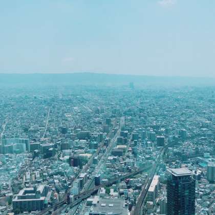 あべのハルカスに到着しました。晴れているので、遠くにある建物もよく見えます。「さっき電車から見た京セラドームがある!」など、大阪市にある建物をたくさん見つけています。
