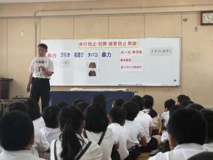 難波少年サポートセンターから講師の方に来ていただき、非行防止教室をおこないました。