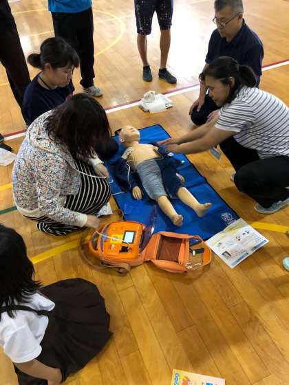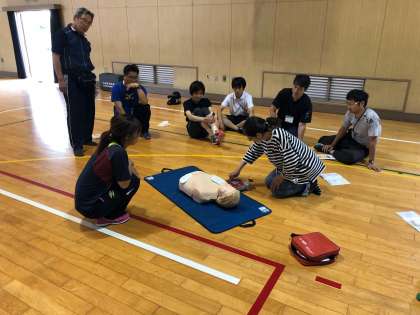 資料や人形は西成消防署からお借りして、応急手当普及員の資格をもつ教頭先生が指導講師を担当されました。もしもの場合の対応や心肺蘇生法などを教えていただきました。