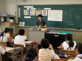 4年生は野菜について学習しました。野菜の働きを考えたあと、給食で使われている野菜の量を知り、実際の野菜を使って1日に必要な300gの野菜をはかってみます。1人分で調理することは、なかなかないので、家族分の量もはかってみます。想像していたより、多かったようです。