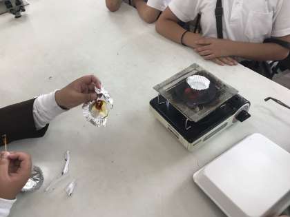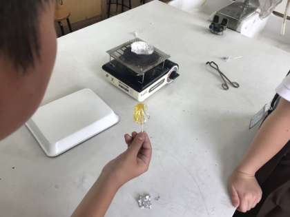 科学工作クラブでは、べっ甲飴を作り、理科室に甘い香りが広がりました。