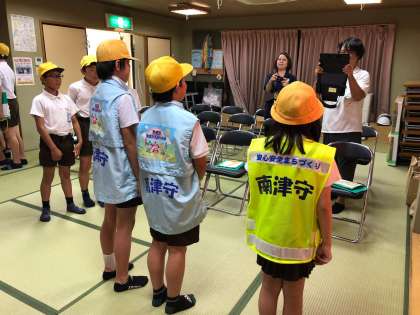 南津守地域の防犯パトロール隊は平成27年11月に発足し、昼と夜のパトロールを通して地域の安全を守る活動をされています。現在36名の方がこの活動に参加されていて、活動日は平均10名前後の方が自転車に乗って地域を回られています。日によっては、お巡りさんと一緒に地域を回ることもあるそうです。