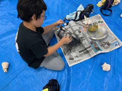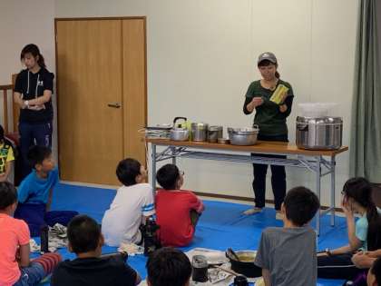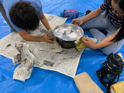 食べ終わった後は、使った調理道具の後片付けです。説明を聞いて始めます。