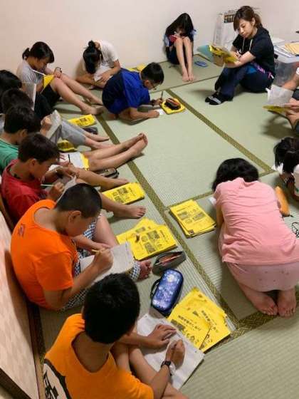 明日の連絡、注意事項の確認です。明日はお布団の整理整頓があります。たたみ方の確認をしました。