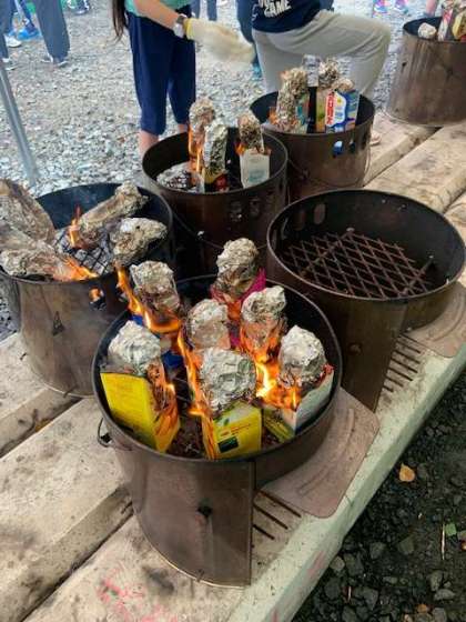 牛乳パックがどんどん焼けていき、最後にアルミホイルだけが残って出来上がりです。
