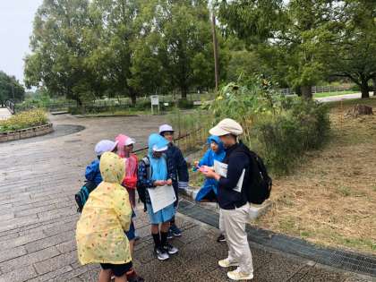 学校から天下茶屋駅まで歩いて移動し、地下鉄堺筋線で南森町駅を下車、JR大阪天満宮駅から野崎駅へ‥。本日、5年生が遠足で訪れている場所は、大東市にある深北緑地公園です。少し雨が降っていましたが、予定していたオリエンテーリングは無事に実施することができています。