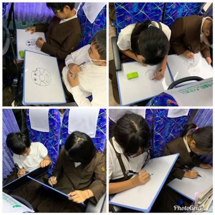 今はお絵かきゲームです。お題の絵を描き、次の友達に回していきます。最後まで上手く伝わるかな。