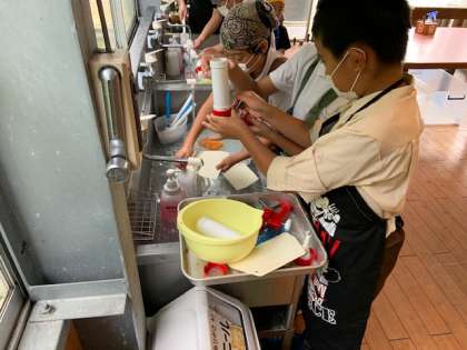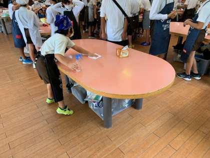 作った後は、使った道具の後片付けです。テーブルもきれいにしています。