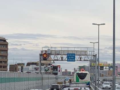 大阪市内に入っていますが渋滞のため学校到着が遅れます。