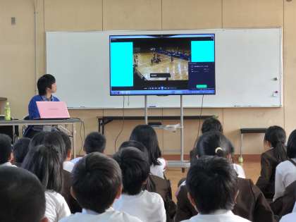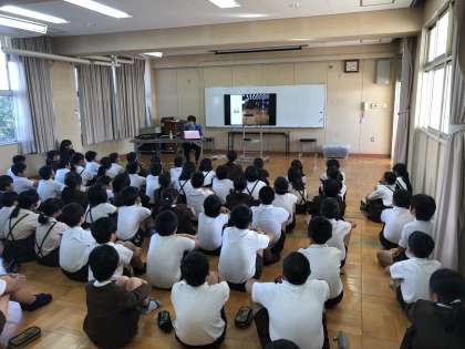 視覚障がい者の方が普段の生活でどのように見えているのか、また、視覚支援学校では、学校生活を過ごすにあたってどのような工夫をされているのか等、たくさんのお話をしていただきました。子ども達はしっかり話を聞くことができました。