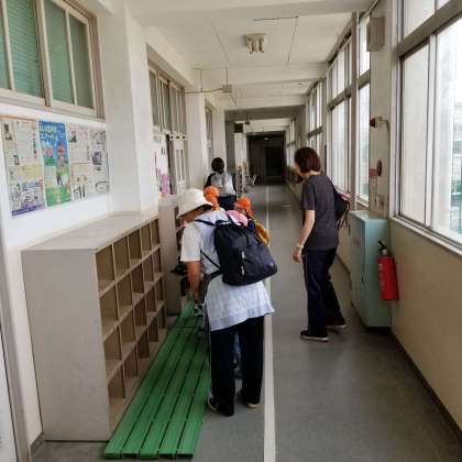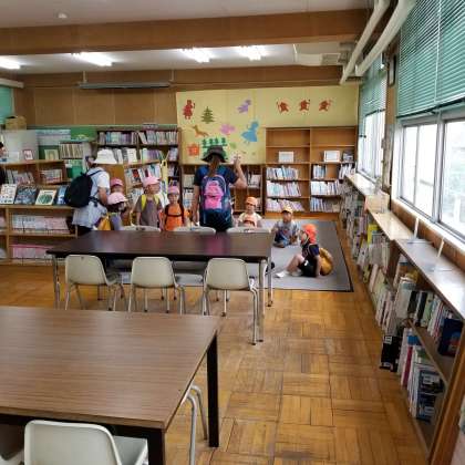 本日午前中に南津守保育所の4.5歳児が地震津波を想定した避難訓練にきました。3階の図書室で南津守保育所の先生のいうことをしっかりと聞いていました。