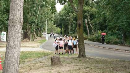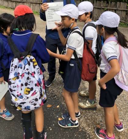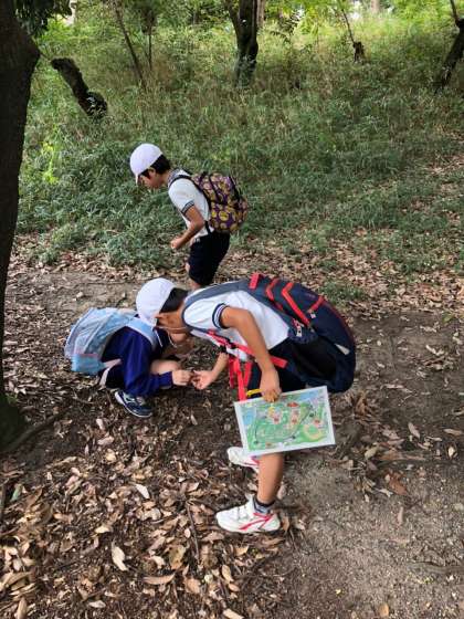 オリエンテーリングを終え、全ての班が集合場所に向かいます。少し時間にゆとりがあるので、自然を観察しながら歩いています。
