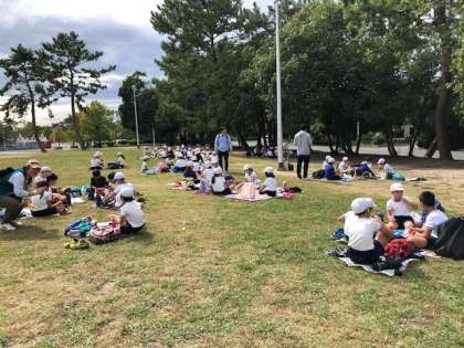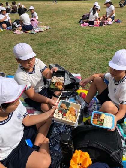 広場に移動してお弁当タイムです。残さず食べましょう!