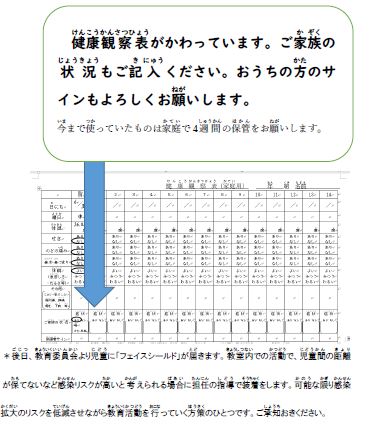 毎朝,お子さまの検温,健康観察にご協力いただきありがとうございます。