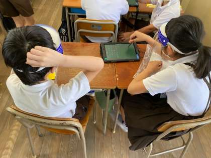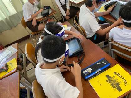 今日はその第1時間目として、「福祉って何?」をテーマに学習を進めました。課題設定のあと、タブレットを活用し、福祉について調べる学習を始めています。