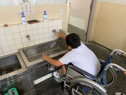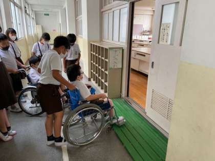 町のことを考える前に、学校の中はどうなんだろうといろんな人の視点に立って探検してみました。普段何気なく使っているトイレや手洗い場は、使う人によって不便だったり、普段気にならない小さな段差でもつまづきやすかったりと、たくさんのことに気づくことができました。