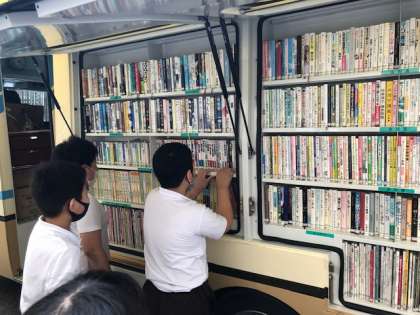今年度に入り,初めて子どもたちが利用できる日ということもあって,多くの子どもたちが利用しました。子どもたちの様子を見ると,自動車文庫をとても楽しみにしていた様子が見られました。