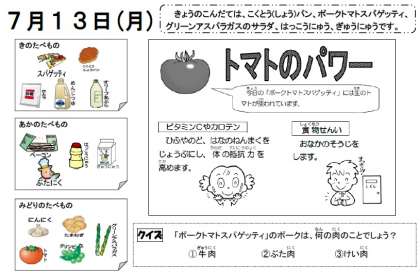 給食では、プチトマト以外の野菜はすべて加熱しています。きゅうりの場合も、熱湯で、歯ごたえがのこる程度にゆがくか、焼き物機で蒸し焼きしています。お家で作られる際は、電子レンジを活用することもできます。